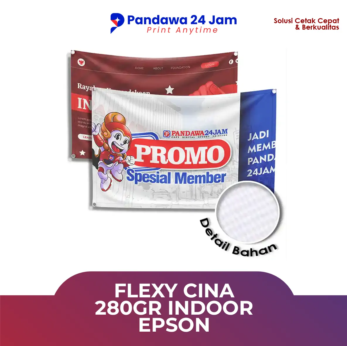 - Tahan Cuaca: Banner ini tidak mudah robek, pudar, atau berjamur meskipun terpapar sinar matahari dan hujan.